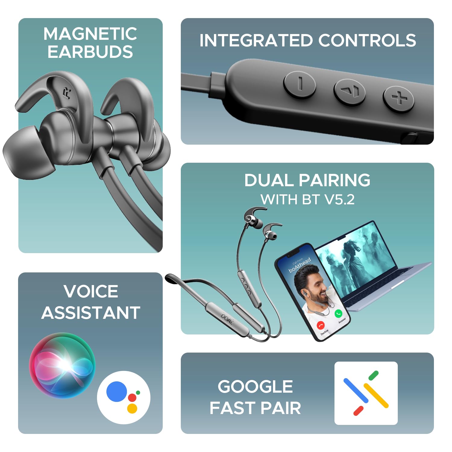 boAt Rockerz 255 Pro+, 60HRS Battery, Fast Charge, IPX7, Dual Pairing, Low Latency, Magnetic Earbuds, in Ear Bluetooth Neckband, Wireless with Mic Earphones (Cosmic Grey)