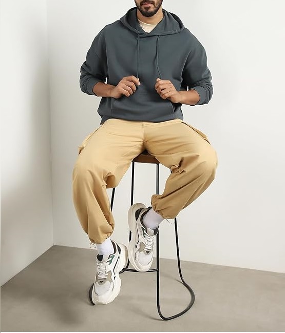 - Oversized Classic Hoodie: A plain warm & comfy hoodie made with premium cotton fleece blend fabric that comes with the trendy oversized fit and a spacious kangaroo pocket.