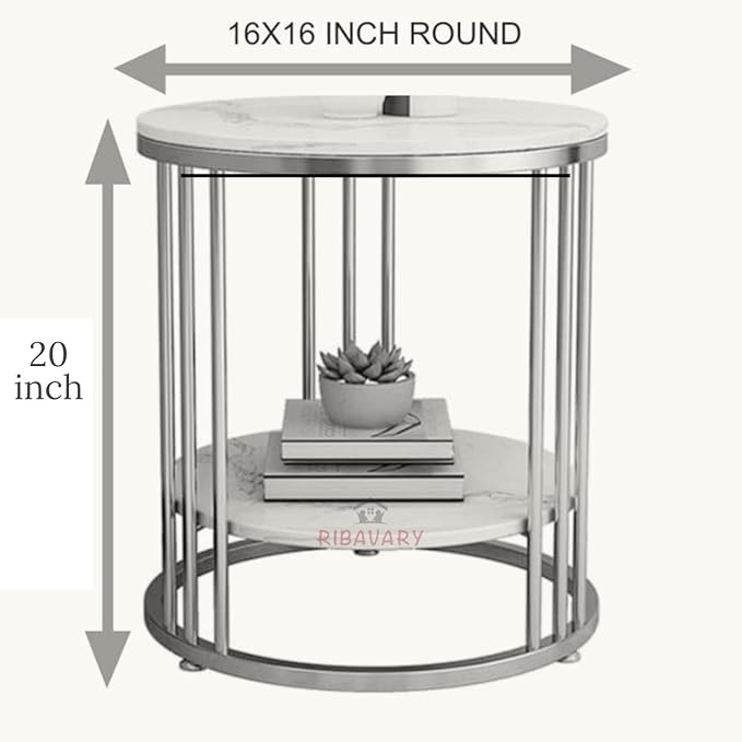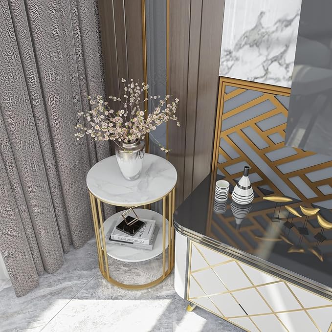 Metal Round Coffee Table with Extra Shelf for Living Room & Bedroom, Side Table for Small Spaces, Wooden Top & Metal Frame End Table, Modern Elegent Design (White & Golden) 1,999.00 Save:501.00(20%)